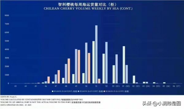 二是各大物流运输陆续到港,车厘子集中上市,供应量大,价格一降再降。