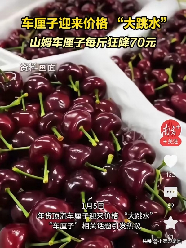 1月5日,有消息称车厘子的价格迎来了大跳水,尤其以山姆会员店的车厘子降价最大,每斤狂降70元!