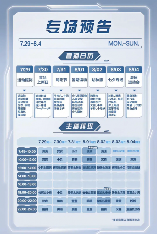 从下周的排班表来看,几乎天天有专场、天天有惊喜。尤其之前相对缺少的美妆类品类,与辉同行也在正在迎头赶上。