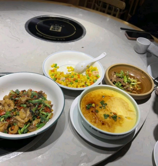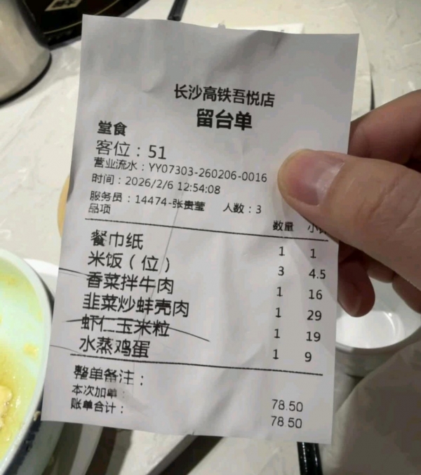 男子是在店里面吃的,点了香菜拌牛肉、韭菜炒蚌壳肉、虾仁玉米粒和水蒸鸡蛋一共4个菜。