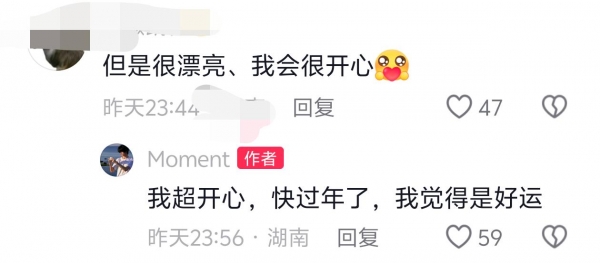 男子对于自己"吃出"珍珠表示很开心,加上快过年了,感觉就是好运。