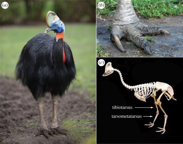 除了以上这些外貌特征引人注目以外,鹤鸵的"大长腿"和独特的"脚趾"也非常特别。这家伙的腿部又长又粗壮,有着三个脚趾。仔细观察这些脚趾,就会发现每个脚趾上都有着尖利的指甲,尤其是其最内侧的那一脚趾,总长约为120毫米,指甲长度更是长的惊人。