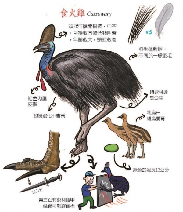 鹤鸵的外貌特征中,指甲长度极为显眼,也极为锋利