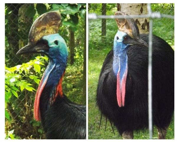 值得一提的是,这家伙不仅体型很大,长相也颇为怪异,羽毛往往呈黑色并下垂,看起来非常的细密,远看就如同羽毛扇。它的头部和颈部都没有羽毛,头部主要为蓝紫色,颈部则有红色的肉垂。此外,鹤鸵的头顶还有一个扎眼的"王冠",这个半扇形的东西其实是它的角质盔。