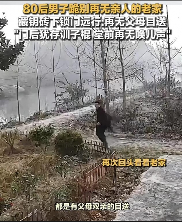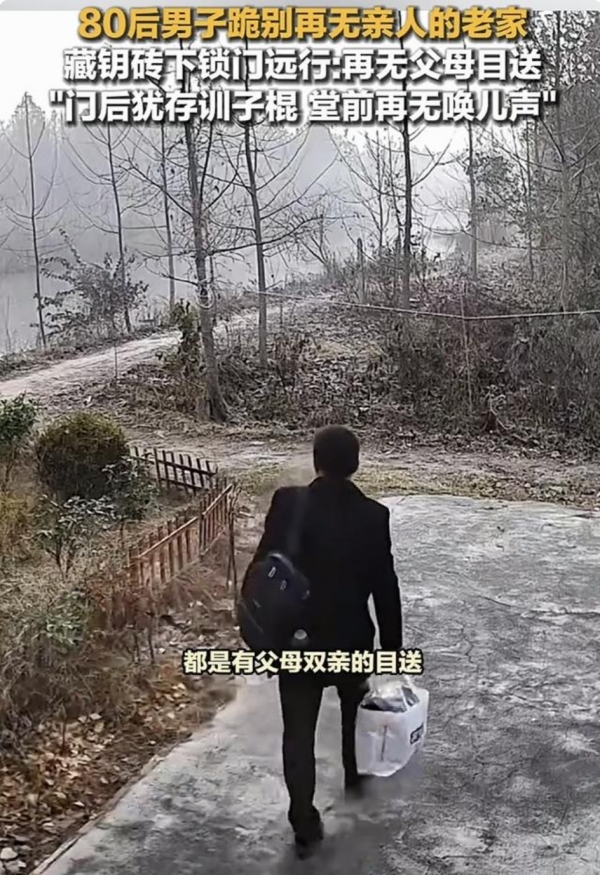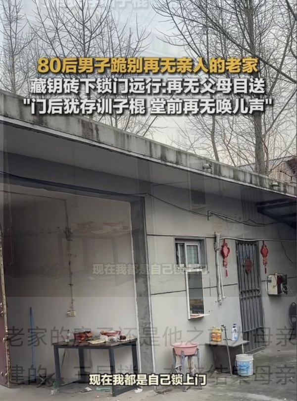 他在这个被称作"家"的房子里待了整整一个星期,离春节只剩下几天。他却执意要走,他说没有了父母的年,过得再热闹也只剩下空洞。那把被他小心翼翼藏在砖块下的钥匙,曾经是回家的凭证,现在却成了锁住回忆的工具。他锁上的不只是一扇门,更是自己的一段人生。他跪下的不是房子,而是自己永远无法弥补的遗憾,是那些没能说出口的再见,没能吃上的最后一顿饭。