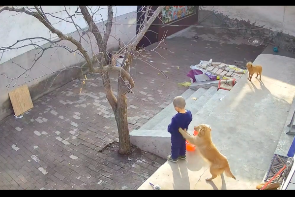 2月27日在山西晋中,网友家里养了有几只狗狗。这一天晚上孩子向妈妈告状,说狗狗推他。一开始网友还不相信,于是就打开了监控查看,这才知道,原来在白天,男孩站在台阶上上厕所时,狗狗很兴奋的以为孩子要出来和它玩,结果就扑了上去!结果狗狗的劲太大了,一下子就将男孩推到下面了!还好男孩台阶不算高,男孩倒是没有摔倒!