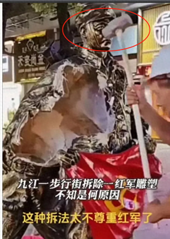 九江大中路步行街有个红军雕像,这雕像用的是玻璃钢材质,时间长了,老化破损得厉害,市民们多次反映,希望能重修。有关部门批准同意后,决定把它拆了,在原地建个铜质的新雕像。