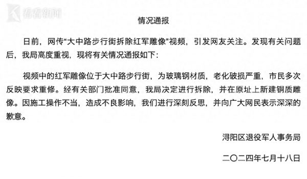 舆论那是一边倒,全在指责这种粗暴行为。九江相关部门倒是反应挺快,马上就承认工作失误,跟广大网民道歉。还说已经深刻反思,以后干活儿会更慎重、更文明,也会加快新雕像的建设速度。