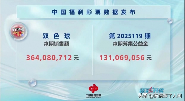 本期双色球销量为3.64 亿,筹集1.31 亿的社会公益金。