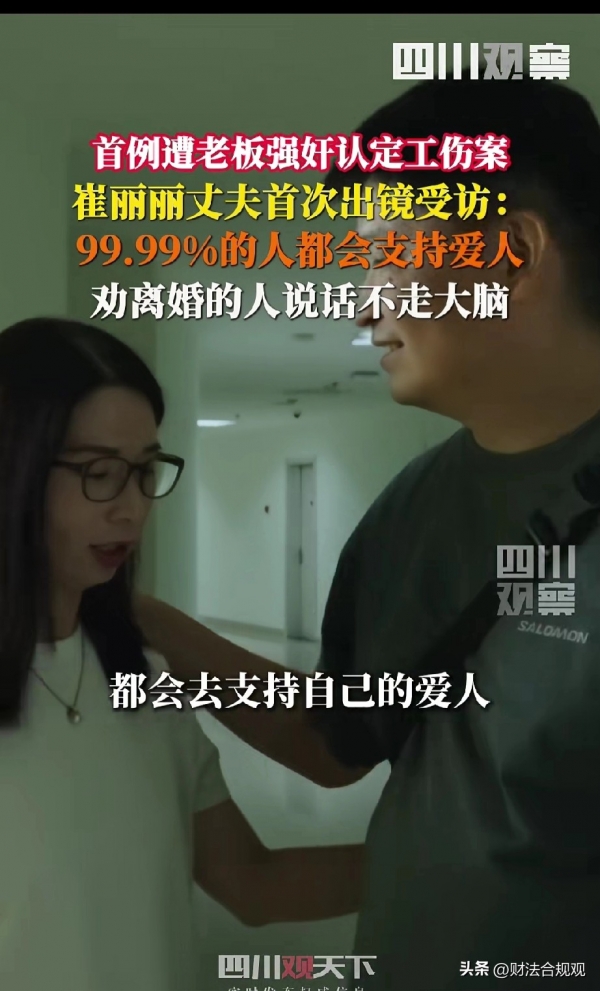 "99.99%的人都会支持自己的爱人",劝离婚的人说话不经过大脑。"崔丽丽的丈夫首次现身媒体镜头前,表达对妻子的全力支持。他的背后,是一段长达近两年的艰难维权之路。