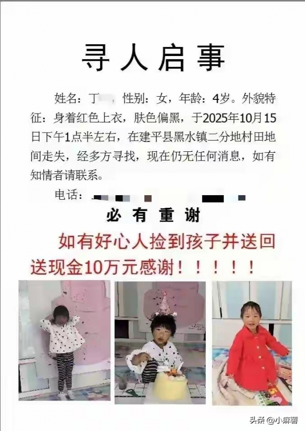 10月15日中午,辽宁朝阳市黑水镇一名四岁女童在车内睡觉时失踪。事发后当地组织上万人次参与救援,连续两天搜寻无果。到17日上午,孩子最终在距离事发地不远的沟坳处被找到,身体状况良好。