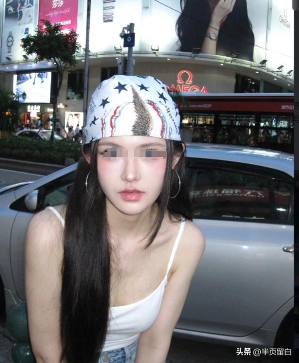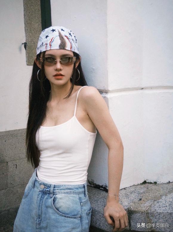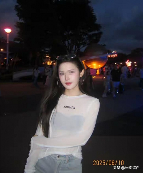 2025年8月10日:香港迪士尼游玩照被晒,黑色背心搭牛仔裤、大耳环造型