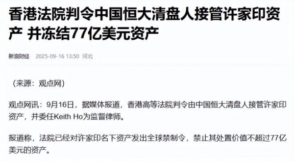 就在这次国庆前夕,香港高院作出判决,冻结了许家印名下的全部财产,总金额高达77亿美元。