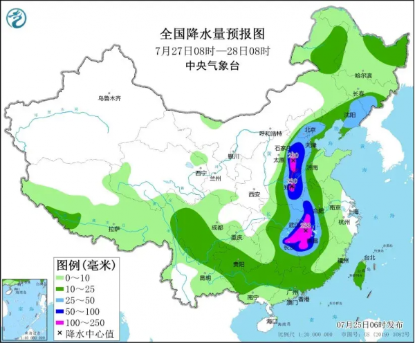 27号开始,也就是后天,我国,河北中南部、河南中部、湖北东南部、湖南东北部、江西西北部等地部分地区有大暴雨袭来,届时降水量将会达到180毫米左右。