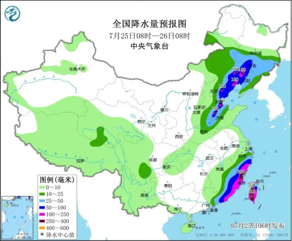 重点强降雨地区将会出现在,内蒙古东南部、辽宁中西部、河北东北部、山东北部、浙江南部、福建东部、广东东南部、台湾岛大部等地部分地区有大暴雨,福建东北部、台湾岛中南部等地局地特大暴雨袭来,预测降水量将会达到280毫米左右。