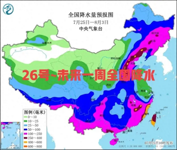 "看山看水看天气,下雨情况我都知"。新一轮强降雨大范围来袭,从明天26号开始,大范围强降雨开始南下,局地可能迎来大暴雨。