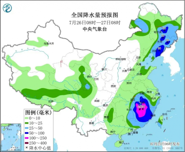 到了明天也就是26号开始,我国内蒙古东北部、东北地区大部、安徽南部、湖北东部、湖南东部、江西、浙江南部、福建、广东东部等地部分地区有大到暴雨出现,最大降水量200毫米左右。