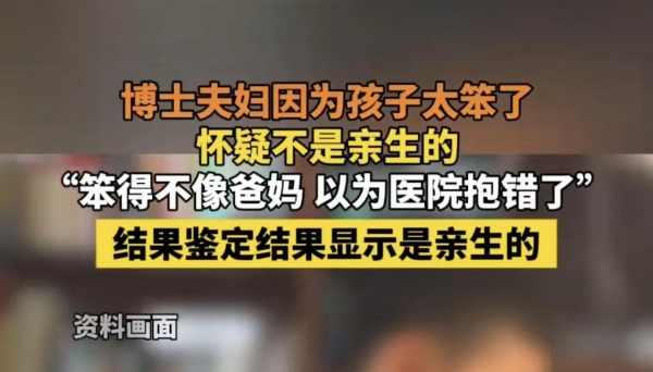 这对夫妻疑惑的原因,那就是两人都是博士,而小孩他们并不认为聪明,从而产生质疑是否在医院抱错的想法,便前往医院做亲子鉴定。