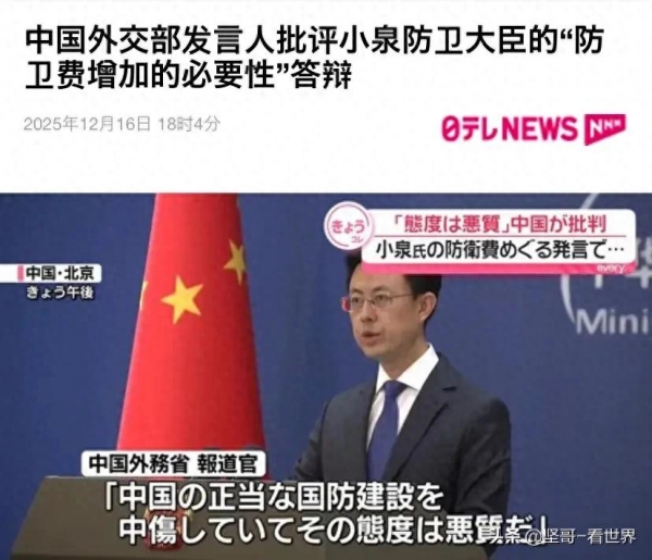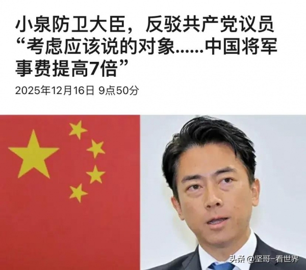 中日双边再爆争端,日本防卫大臣小泉进次郎在国会答辩中的不当言论引发争议。12月16日,小泉进次郎就日本军费增长问题回应质询时,无端将矛头指向中国,声称"中国20年间军费增加7倍,最近3年涨幅明显超过日本",这番缺乏事实依据的抹黑言论,随即遭到中国外交部强势反击。