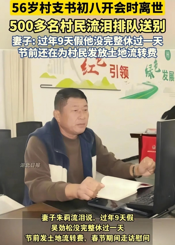 他的同事哭着说:"初八那天,开会,他就在隔壁办公室倒下了,临走一句话都没有留下。"他妻子说,过年9天假,他没完整休过一天。