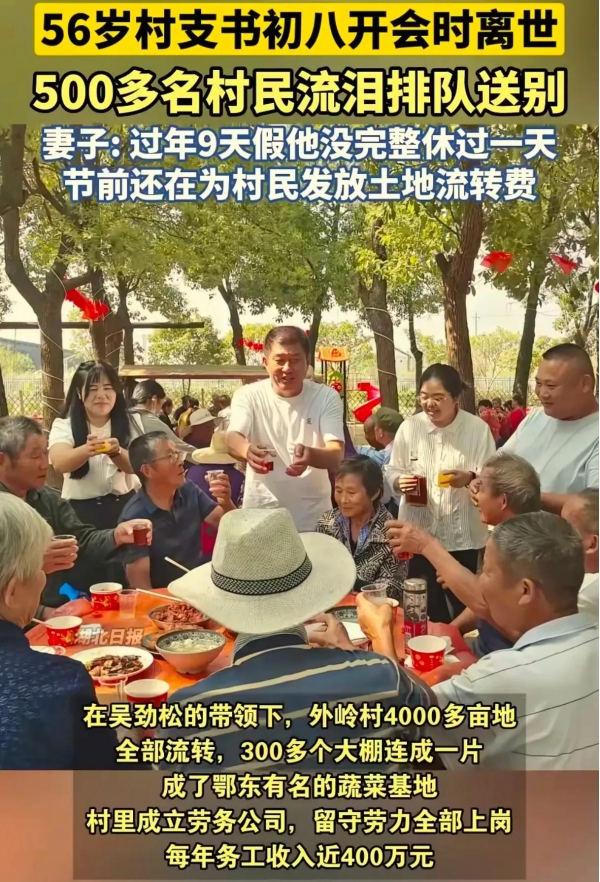 2月26日上午,黄冈市黄州区"新春第一会"本该上台接受"担当作为好支书"的吴劲松没能来。
