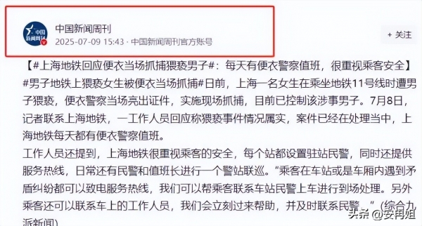 有网友说这便衣警察也太神了吧,10秒就把人拿下,看着都解气,这种人就该当场被抓让他没脸见人。也有人觉得早高峰地铁太挤了,女孩子出门还是得多个心眼,幸好这次警察来得及时。