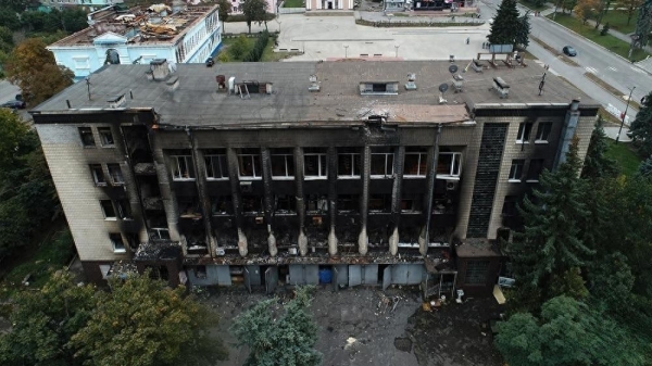 伊久姆市议会大楼在2月5日,被俄罗斯武装部队导弹摧毁,2024年耗资1.3亿格里夫纳修复。