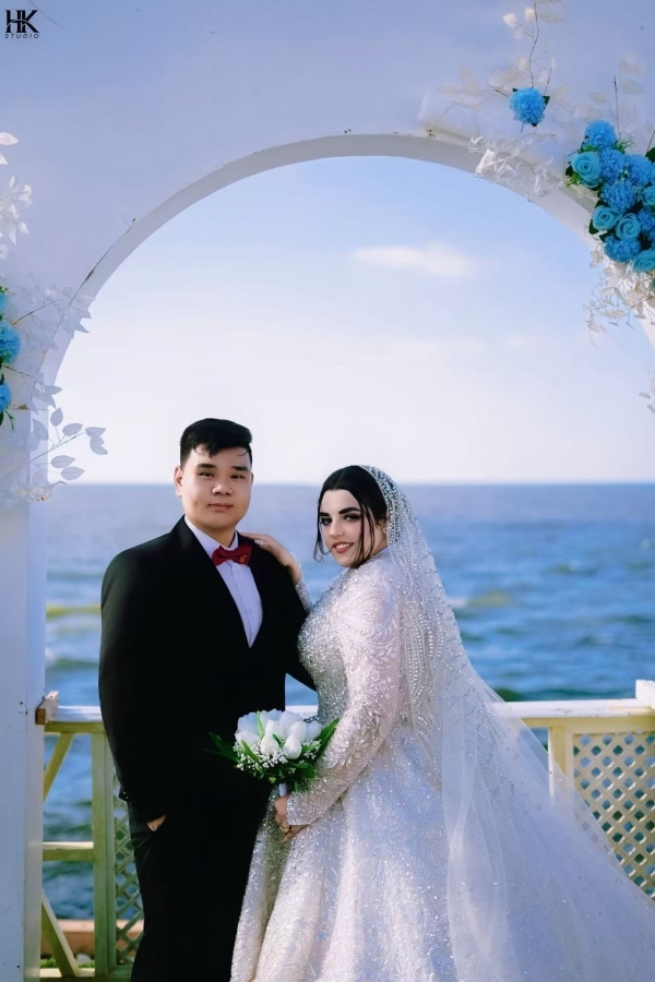 2月11日,九派新闻联系上新郎马先生。今年31岁的他来自安徽省阜阳市太和县坟台镇,新娘马诺雅(中文名字)24岁,来自埃及亚历山大。