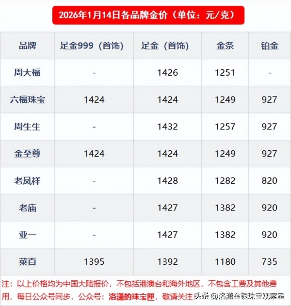 2026年1月14日贵金属市场分析