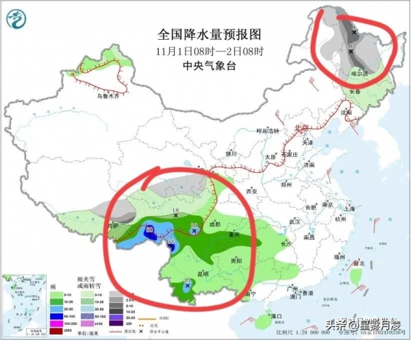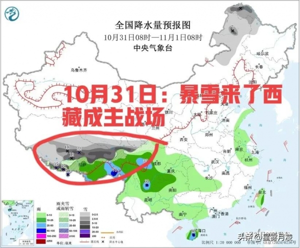 今天(10月31日)一早,西藏中东部、川西高原北部、黑龙江西北部、内蒙古东北部一带,就要进入雨雪最猛烈的时段。