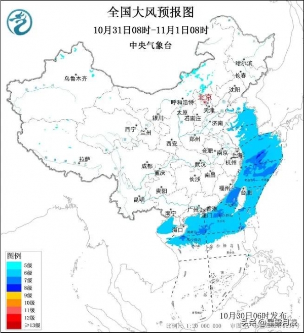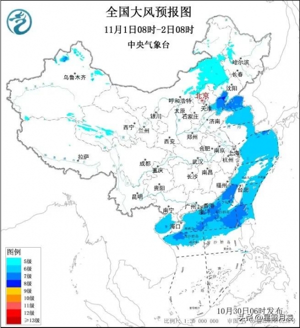 风也不弱,内蒙古东北部、辽东半岛、川西高原北部风力在5~7级,阵风更大,沿海海域同样风急浪高,海上作业得避一避。