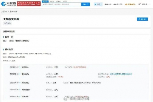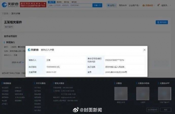 天眼查天眼风险信息显示,近日,王自如新增一则恢复执行信息,执行标的1.94亿元,执行法院为深圳市南山区人民法院。此前,王自如曾被执行3383万元,并因此案被冻结股权、限制高消费。