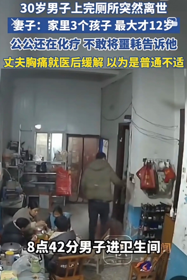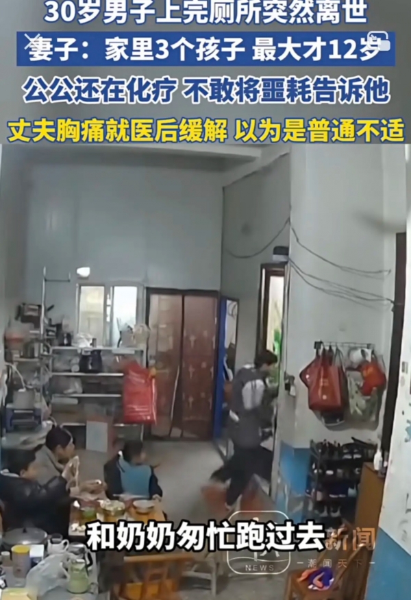 1月20日,河南南阳一位年轻的男子突发意外,早上8点多上厕所的时候突然猝死,虽然全力抢救,但还是无力回天。三个孩子和母亲目睹了全过程,给他们的心里留下了阴影。