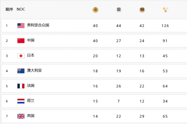 就比如说巴黎奥运会的奖牌榜,中国和美国都得到了40枚金牌,按照金牌排名应该并列第一。
