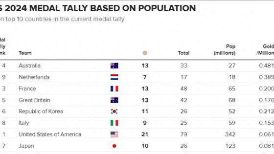 还真别说,这种平均方式一下子就把中国和美国甩在了身后,毕竟中国是人口大国,中国队的奖牌虽然多,但是给十几亿人口一分,每个人也只能摸一下就不错了。