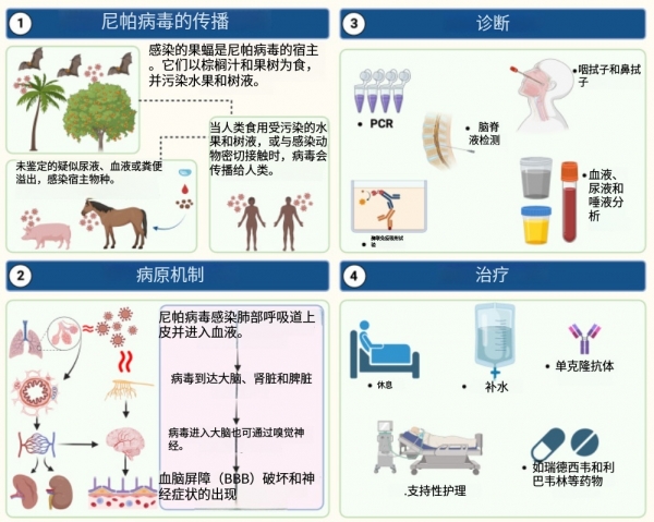 尼帕病毒的传播、诊断、防治