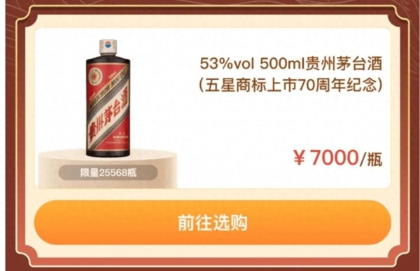今年以来,茅台先后推出蛇年生肖酒、笙乐飞天、大阪世博会"走进系列"等新品,均通过"i茅台"平台发售。其中,8月8日上线的"贵州茅台酒(五星商标上市70周年纪念)"尤为引人关注。这款超高端新品限量25568 瓶,对应1954年5月1日至2024年4月30日的每一天,每瓶均印有专属身份编码(19540501 - 20240430)。