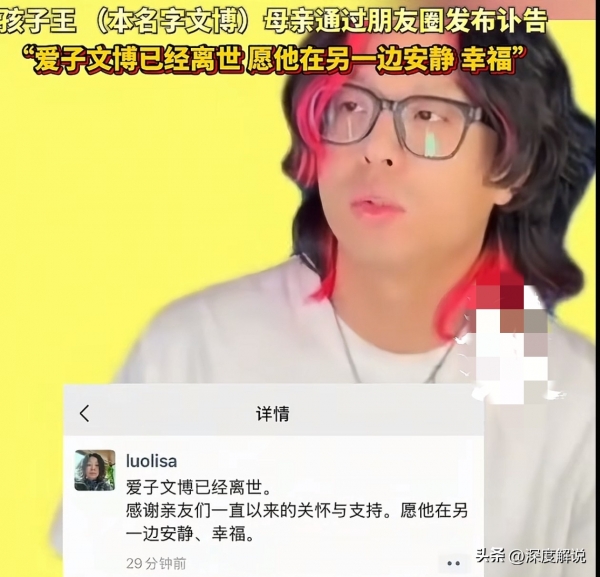 文博的母亲也在朋友圈发布了讣告,证实了这一让人心痛的消息,文博的生命永远定格在28岁。