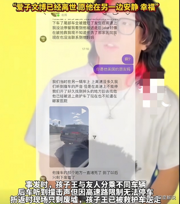 根据蓝新闻报道,10月20日这位年轻的说唱歌手在美国的高速公路上发生了车祸,在另外一辆车上的同行友人目睹了这一切,但是因为在高速公路无法停车,等到折返时现场只剩下汽车的残骸,文博已经被送往了医院。但是由于受伤严重,抢救无效不幸离世。