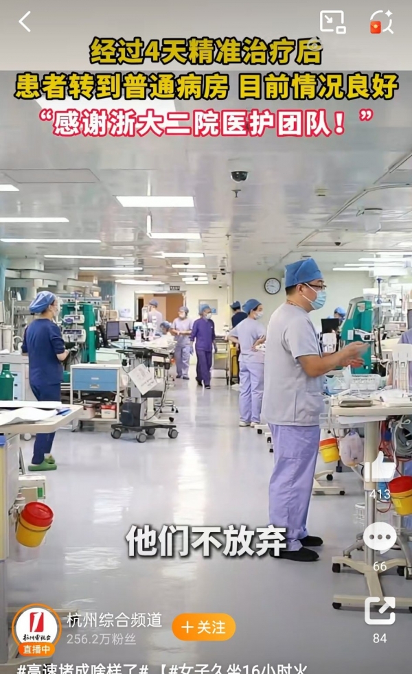患者女儿很感谢杭州医护团队的鼎力相救,她表示,等妈妈康复出院后,想去西湖,"这趟就先看看西湖,下次再来杭州好好玩过。"