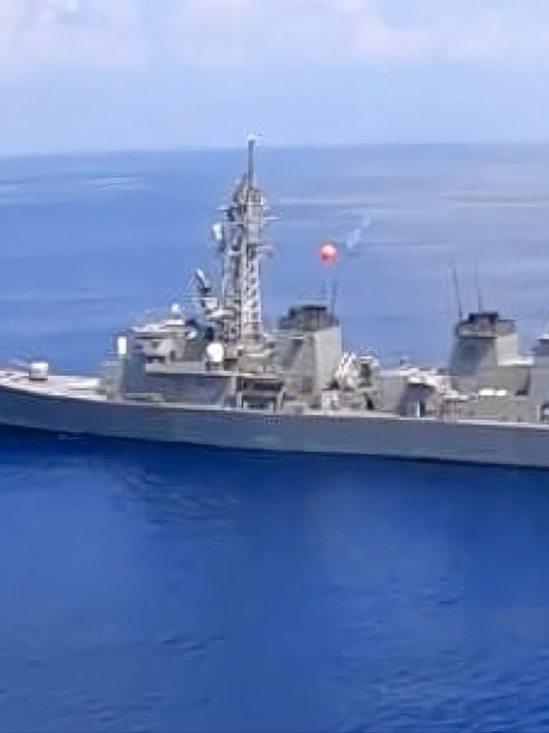 穿完台海,这艘舰直接南下菲律宾,日本更是头回在境外实弹发射导弹击沉靶船。