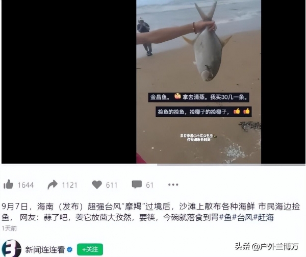 就这么还捡不完,这说明了啥!台风摩羯不是一般的强,是真的强,其威力不容小觑!而且在这条视频下方,很多网友也表示真是羡慕嫉妒,可以美美的大吃特吃了,尤其是这句:蒜了,放茴大孜然!比喻很恰当,吃就行了!