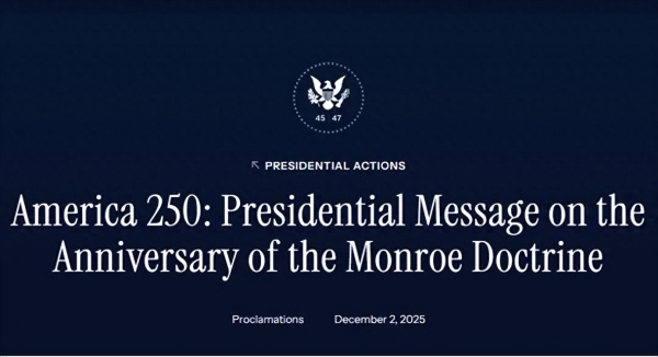 白宫网站发表特朗普纪念"门罗主义"202周年的文章。
