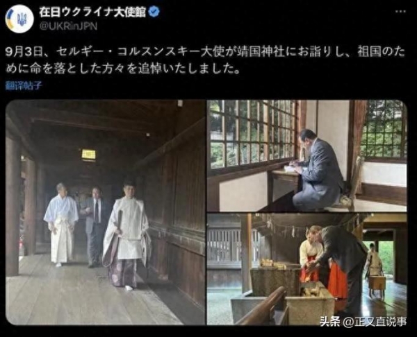 9月3日是世界反法西斯胜利的纪念日,然而乌克兰驻日本大使竟然在这一天公然去日本供奉战争犯的"靖国神社"拜鬼!