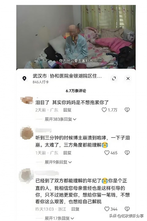 - 有人泪目:"其实你妈妈是不想拖累你了",这条评论获1.7万赞;