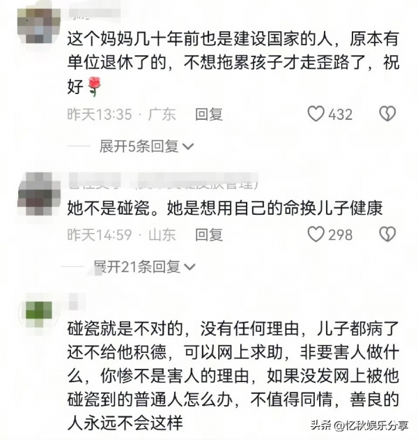 - 有人心疼:"她不是碰瓷,是想用自己的命换儿子健康";