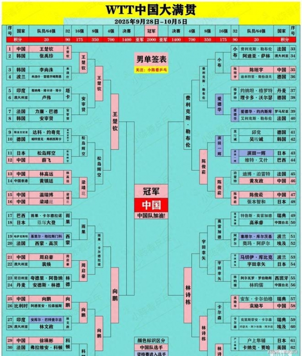 北京时间10月5日,WTT中国大满贯男单半决赛,王楚钦4-3 险胜向鹏,林诗栋2-4F勒布伦,这样国乒无缘包揽冠亚!