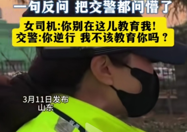 "这就是天不怕地不怕的结局!"山东,一女子开车逆行,被交警拦下,交警问女子为啥逆行,她的回答石破天惊。然后一句反问,竟把交警问懵了。还大言不惭的说:你别在这儿教育我!交警也没惯着女子:你逆行,我不该教育你吗?