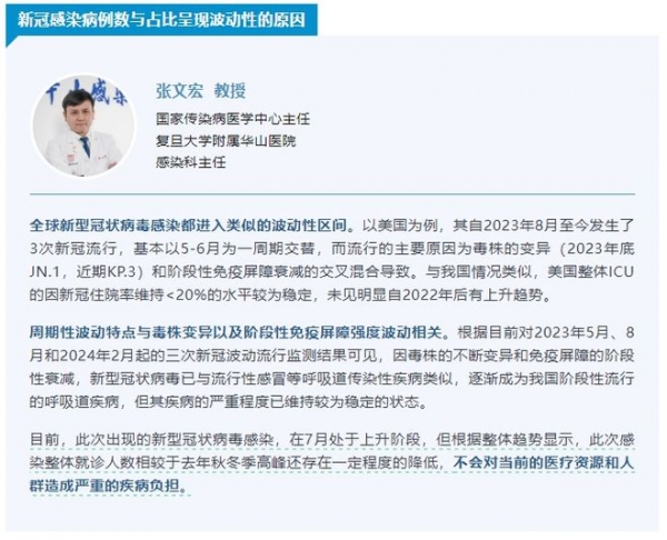 针对这一轮流行情况,近日,国家传染病医学中心主任、复旦大学附属华山医院感染科主任张文宏曾表示,因毒株不断变异和免疫屏障阶段性衰减,新型冠状病毒已与流行性感冒等呼吸道传染性疾病类似,逐渐成为我国阶段性流行的呼吸道疾病,但其疾病的严重程度已维持较为稳定的状态。