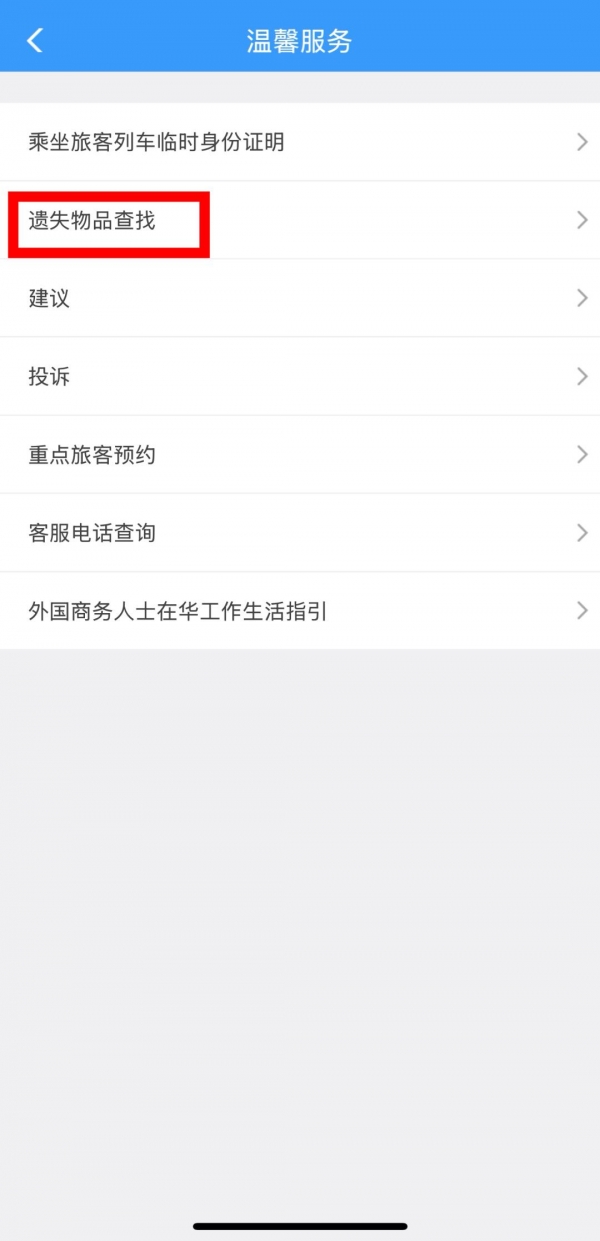 打开铁路12306App,点击温馨服务,选择遗失物品查找。进入登记界面后,选择乘车信息,填写旅客信息以及遗失物品等相关信息,确认提交后,可以在右上角进度查询中查看物品寻找进度。